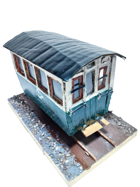 鉄道模型も作る作者が人車鉄道に興味を持ち、明治、大正時代の鉄道の雰囲気を制作したとのことです。よれて曲がった様子にとても親しみがもてます。