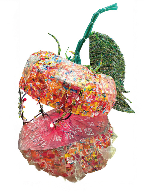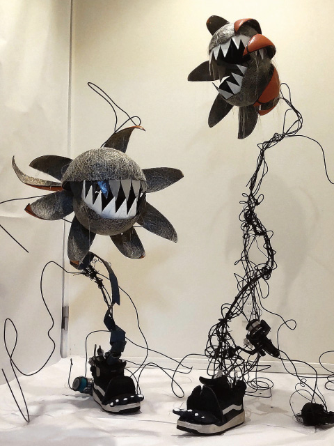 ゴミを食べて減らしてくれる、心優しいけど、見た目はゴミに打ち勝つ強さがあるグロテスクな花を作ってくれました。イメージの対比が面白い作品です。