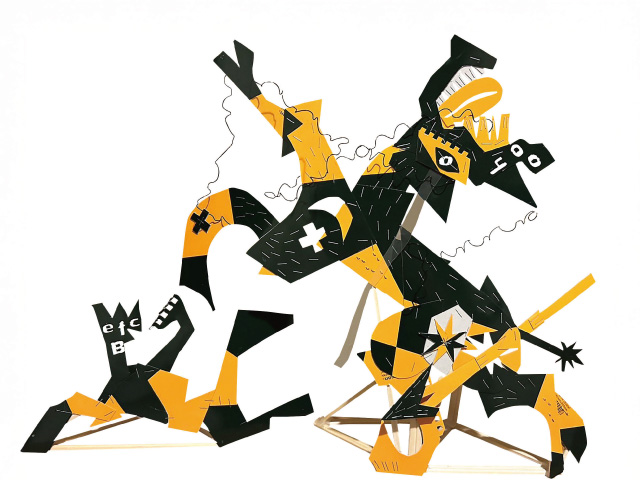 戦いの勝敗がつく瞬間を作り、獣の躍動感を見てもらいたいという作品。スケッチブックそのままの色あいで、素朴な表現スタイルが魅力的な作品です。